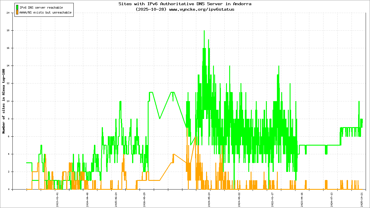 | 10 | / | FAILED hosted | FAILED | ns2.elperiodic.ad 2001:1850:1:5:800::6b 1/2 2017-10-12 |