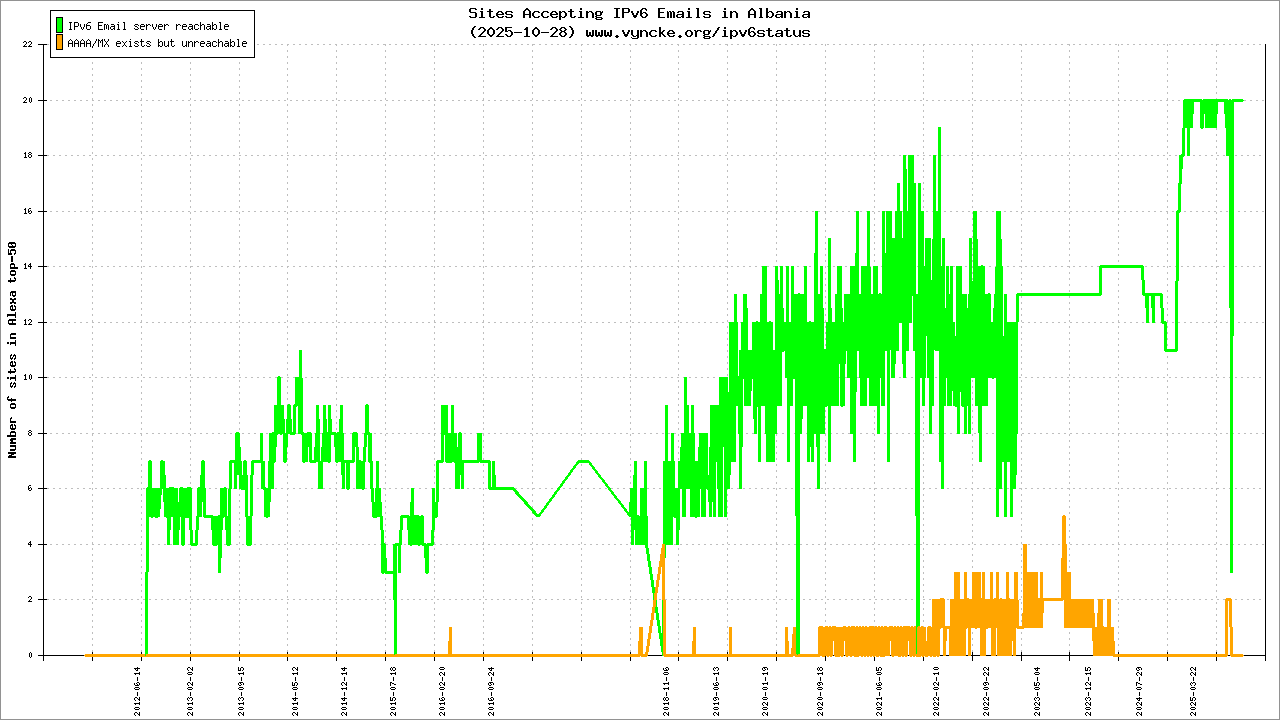 Albania is scanned since 2011-10-25 and the last information is dated 2026-02-23.