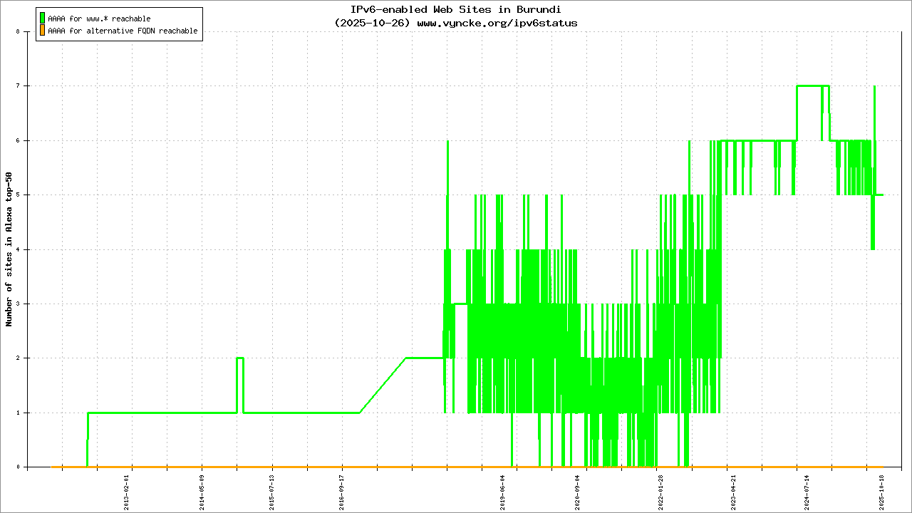 | 2c0f:f6a8::/32 | Burundi Backbone System SM Burundi Backbone System SM | |