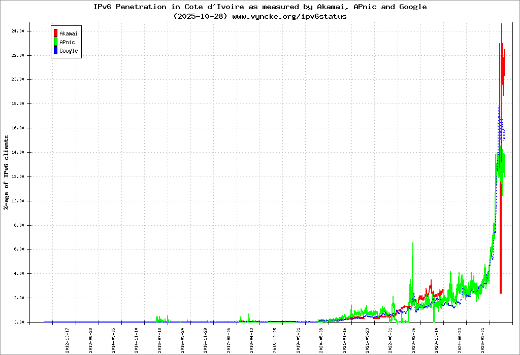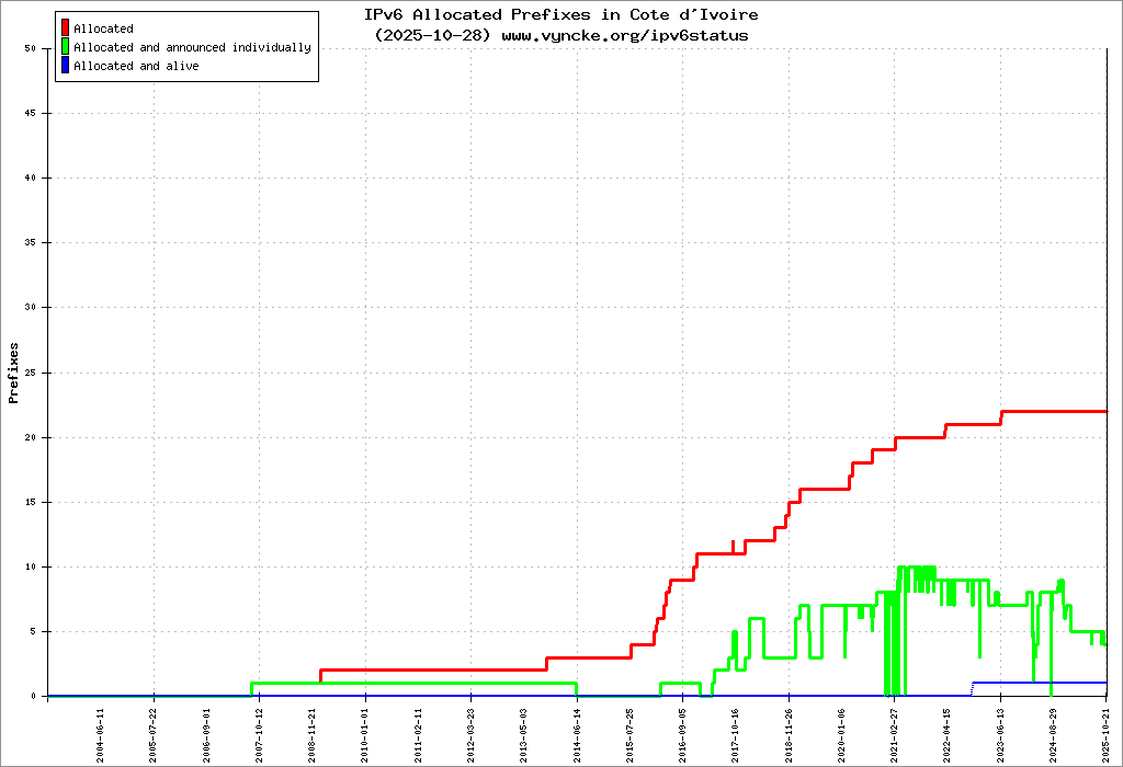 | 2001:43f8:b20::/48 | Authorite de Regulation des Telecommunications/TIC de Cote d'Ivoire-ARTCI Authorite de Regulation des Telecommunications/TIC de | 2023-06-02 |
