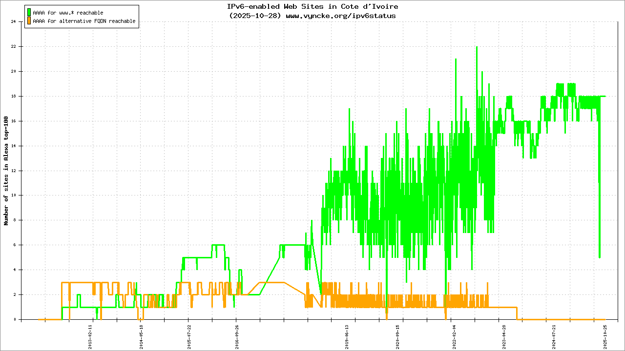 | 2001:43f8:b70::/48 | Authorite de Regulation des Telecommunications/TIC de Cote d'Ivoire-ARTCI Authorite de Regulation des Telecommunications/TIC de | 2023-03-02 |