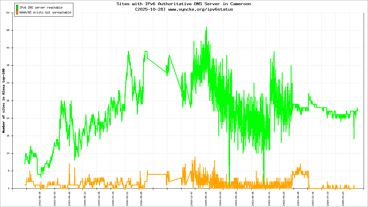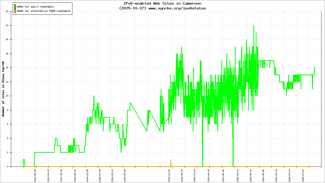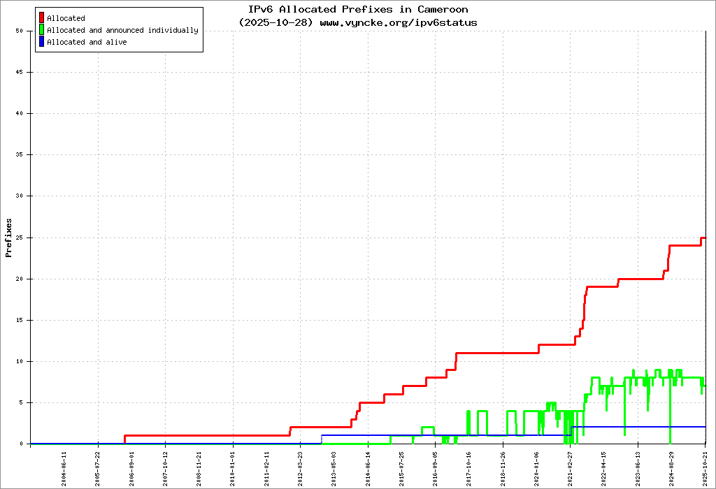 | 2001:43f8:d70::/48 | Cameroon Internet Exchange Point (CAMIX) Cameroon Internet Exchange Point (CAMIX) | 2022-03-23 |