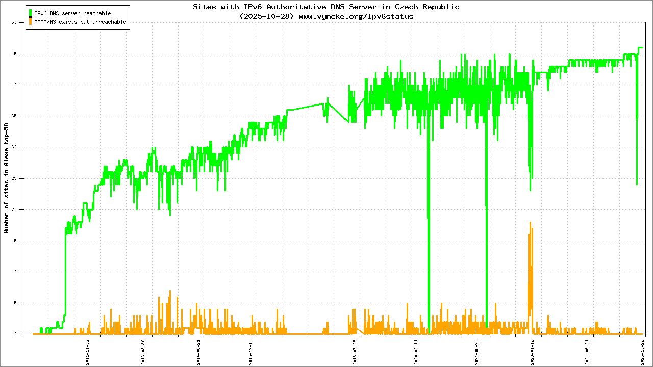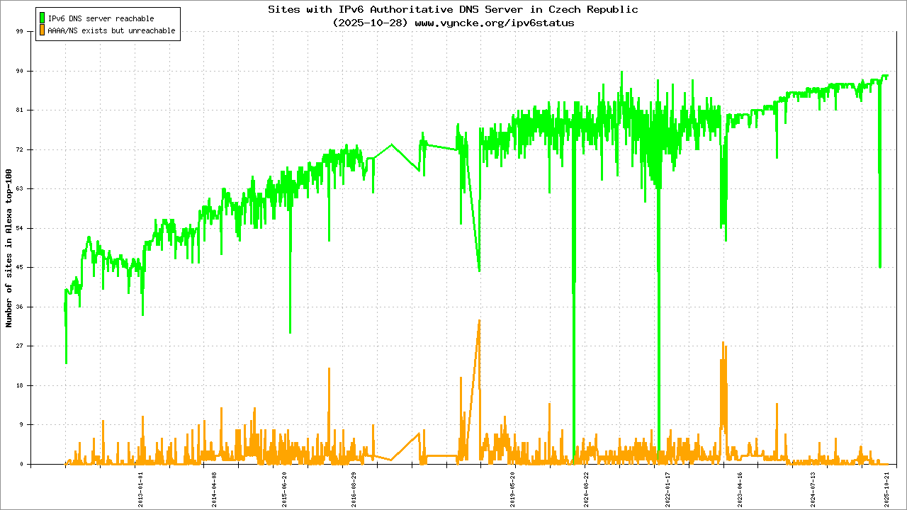 | 10 | 344/834334 | FAILED | FAILED | ceskatelevize2.ns.nic.cz 2001:148f:fffb::102 0/3 |