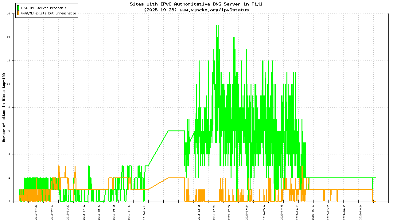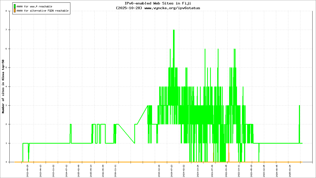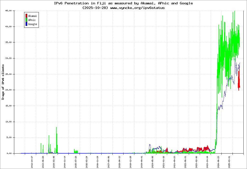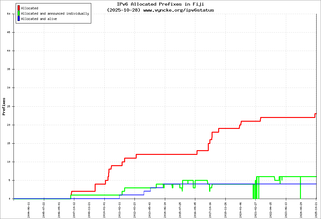 | 2001:df2:a280::/47 | Telecommunications Authority of Fiji Telecommunications Authority of Fiji | 2022-03-23 |