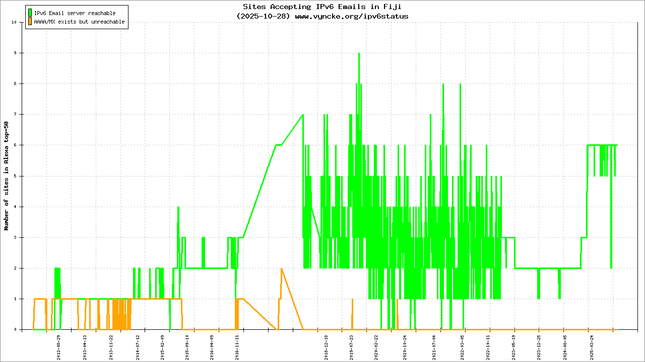 | 6 | / | FAILED | fijisun-com-fj.mail.protection.outlook.com 2a01:111:f403:cc31:: 2012-07-26 |