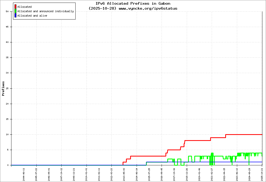 | 2c0f:f640::/32 | Gabon Telecom / Office of Posts and Telecommunications of Gabon Gabon Telecom / Office of Posts and Telecommunications of Gabon | 2020-01-25 |