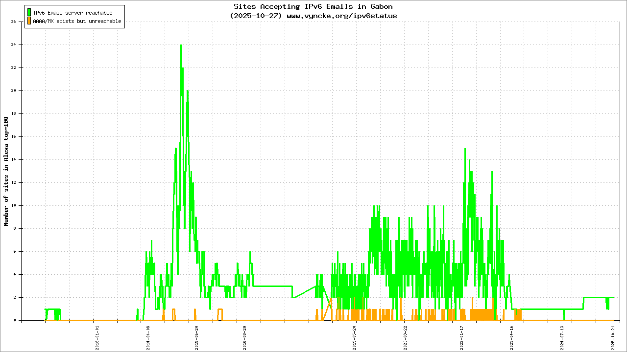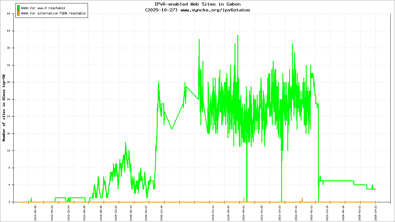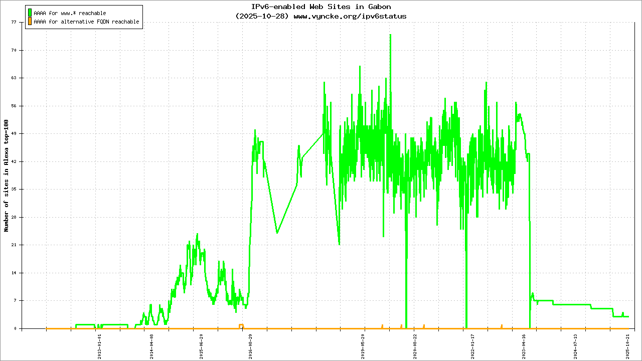 | 2001:43f8:1161::/48 | Gabon Internet eXchange (Gab-IX) Gabon Internet eXchange (Gab-IX) GABIX AS Service | 2020-01-25 |