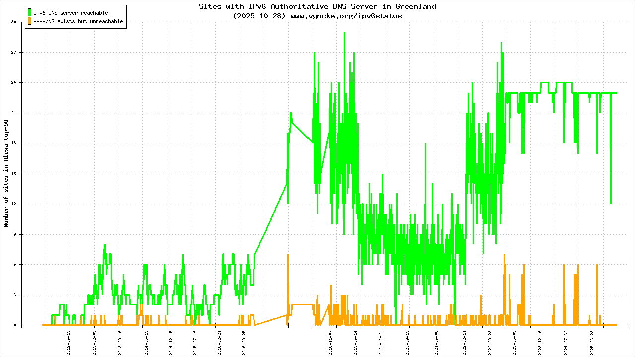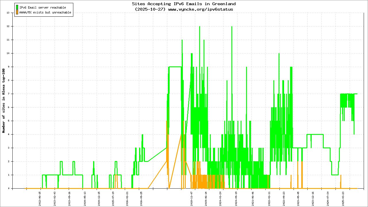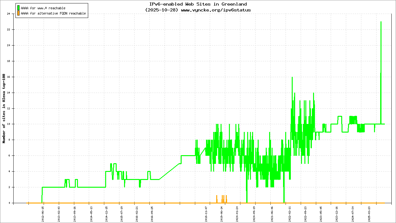 Greenland is scanned since 2011-10-26 and the last information is dated 2026-02-22.