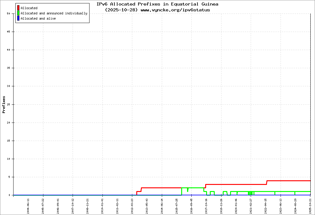 | 2c0f:f8c0::/32 | GITGE Gestora de Infraestructuras de Telecomunicaciones de Guinea Ecuatorial | 2015-12-10 |