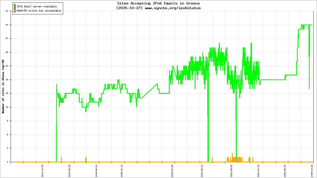 | 26 | 86/350354 | FAILED | mx0.grnet.gr 2001:648:2ffc:200::161 2020-04-23 |