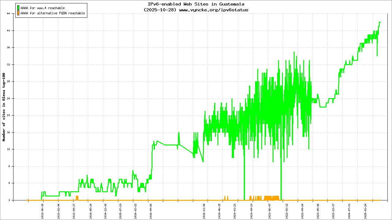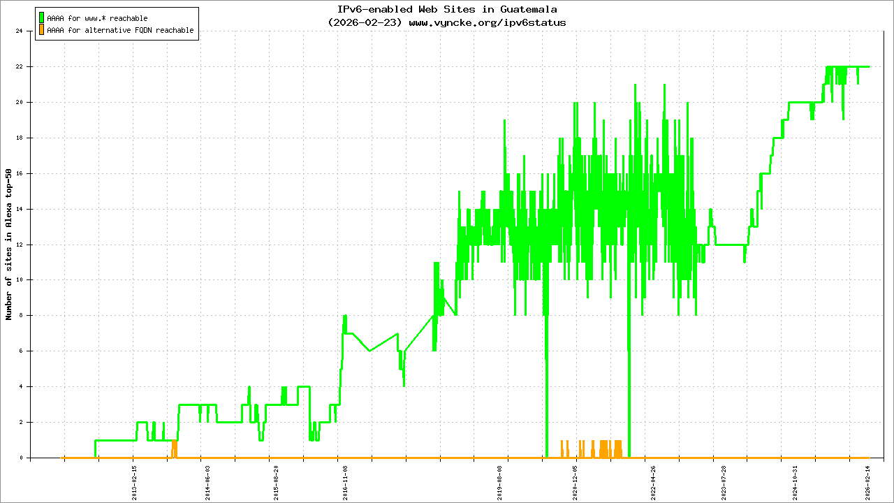 Guatemala is scanned since 2011-10-27 and the last information is dated 2026-02-22.