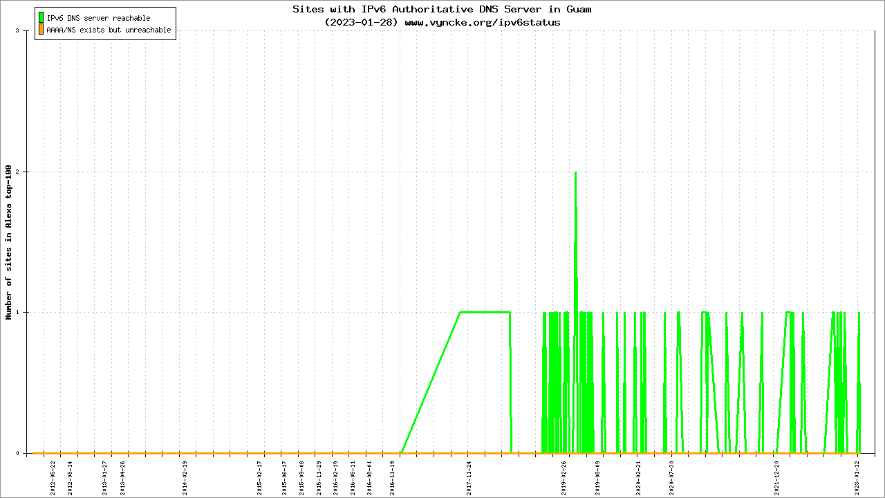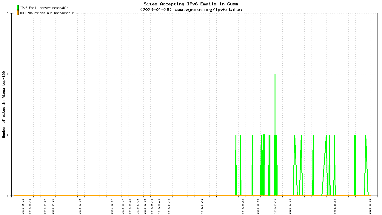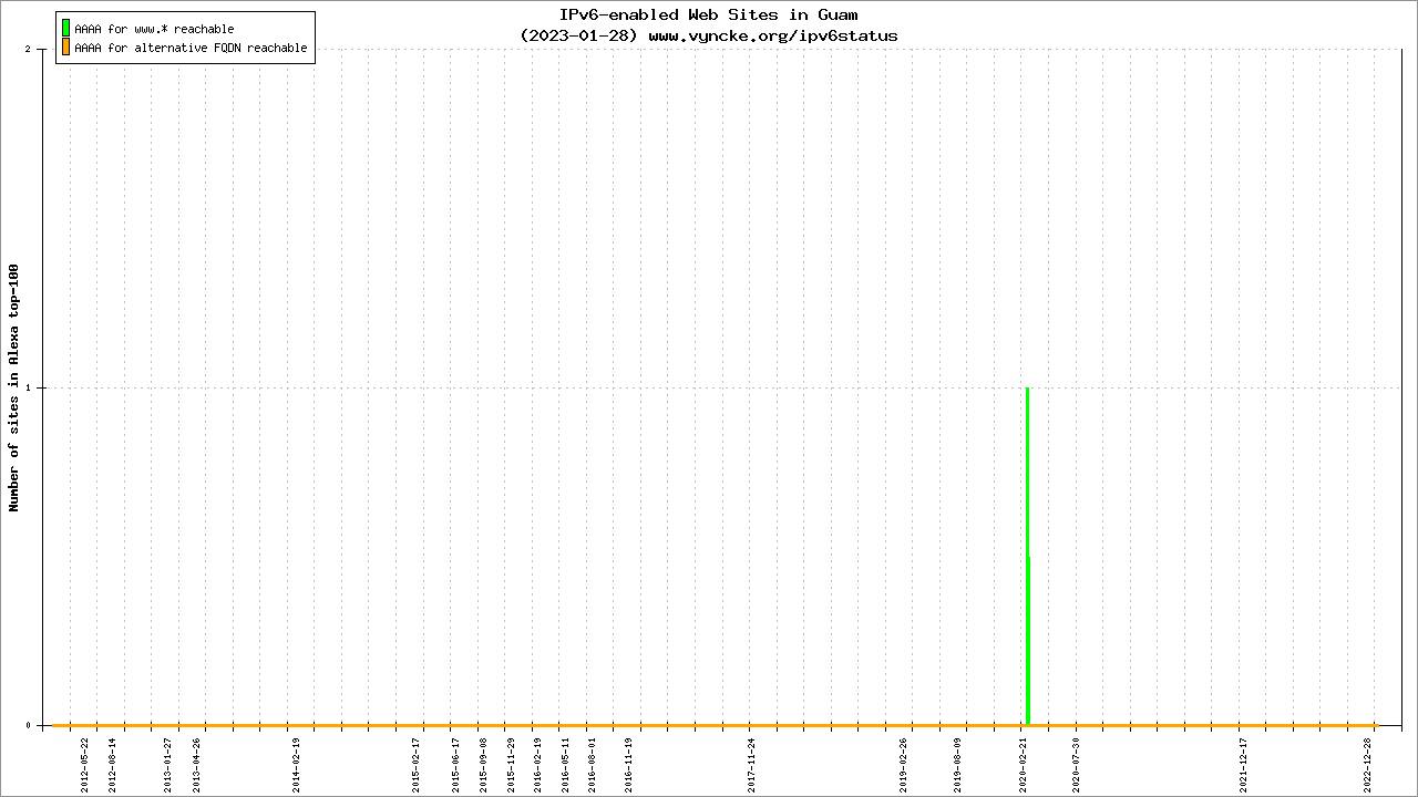Guam is scanned since 2012-02-16 and the last information is dated 2023-01-28.