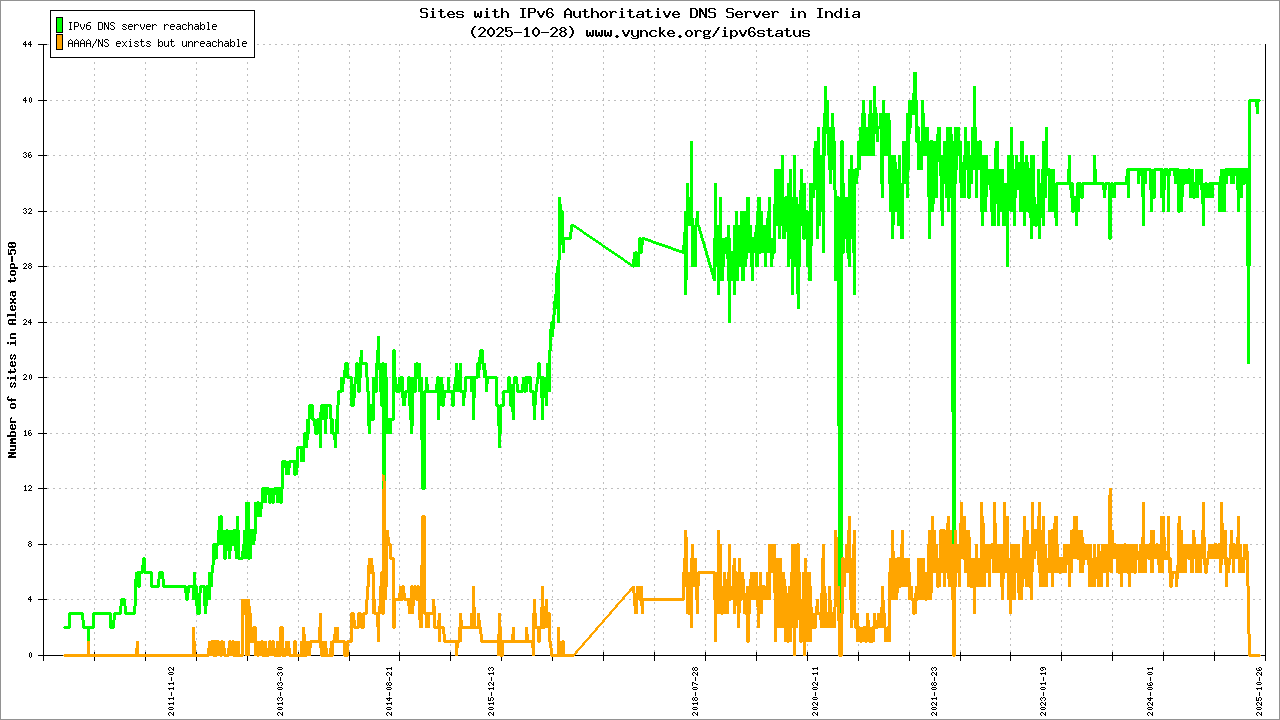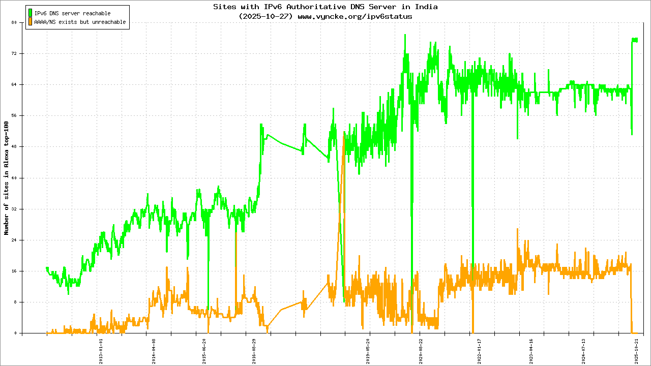 | 49 | / | FAILED | FAILED | ns10.nic.in 2001:4408:10::10 1/4 2019-09-28 |