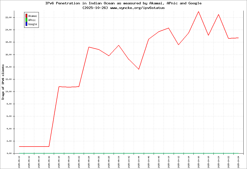Jump to the IPv6 allocated prefixes. Leave the cursor over a green/orange box to have more information (MSS, MTU). Hoover the mouse over a red box to display the AS of the web site (this is usually a good indication of the web hoster). Click on any graphs or maps to zoom on it. You can add a widget on your own web site with your country IPv6 status or get more geographical maps, click here to see how ;-) |