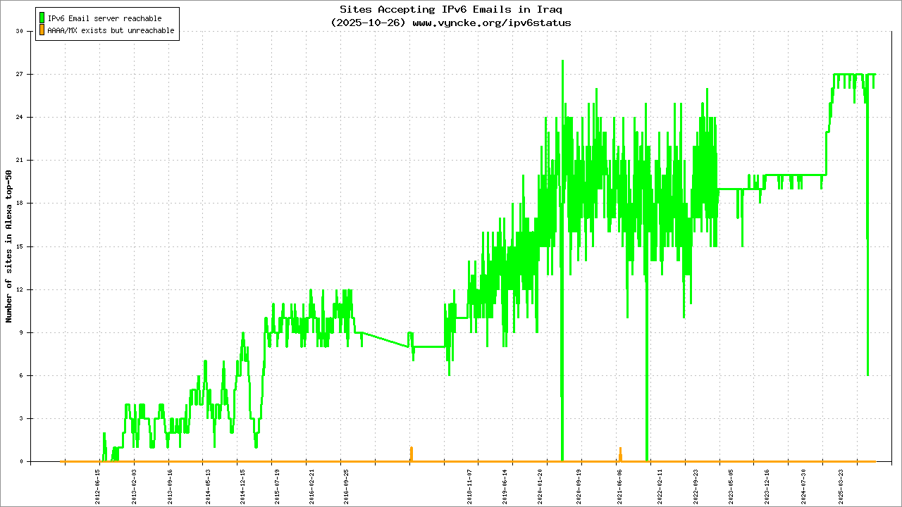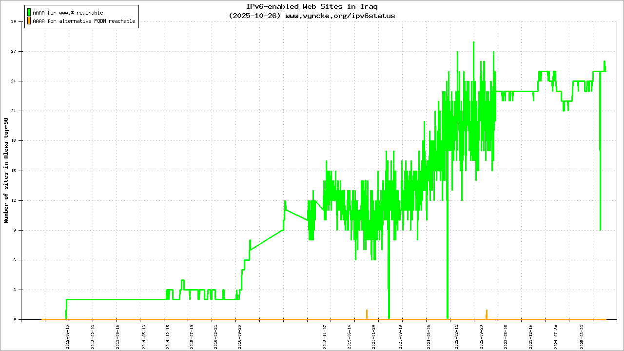 Iraq is scanned since 2011-10-26 and the last information is dated 2026-02-22.