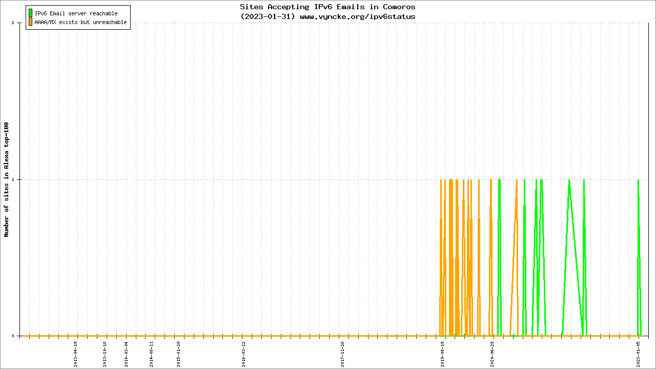 Comoros is scanned since 2012-05-20 and the last information is dated 2023-01-31.