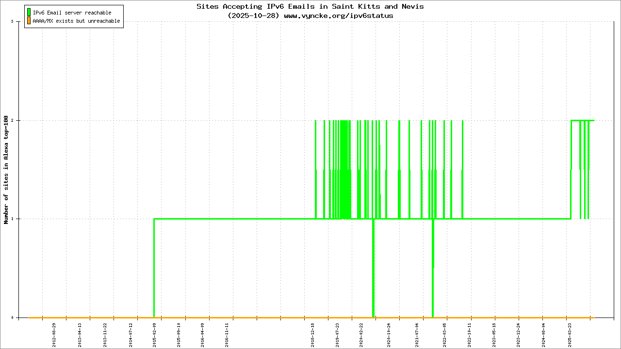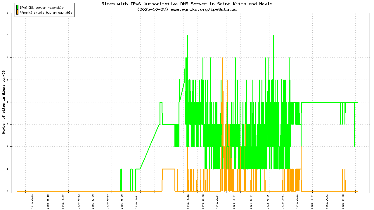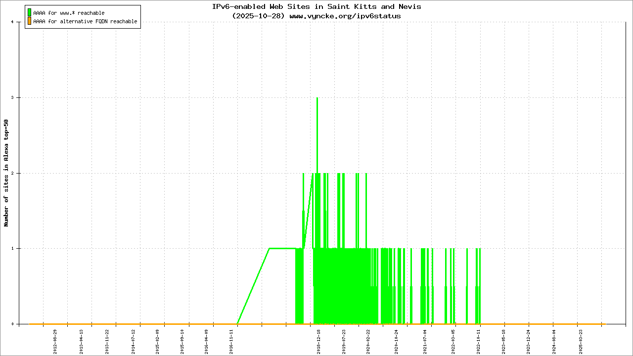Saint Kitts and Nevis is scanned since 2012-01-13 and the last information is dated 2026-02-22.