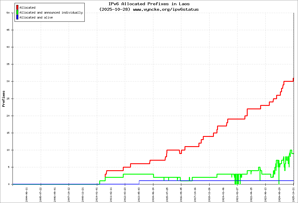 | 2400:aa00:100::/40 | Telecommunication Service Lao Telecommunication Co Ltd Lao Telecommunication Co Ltd | 2021-02-06 |