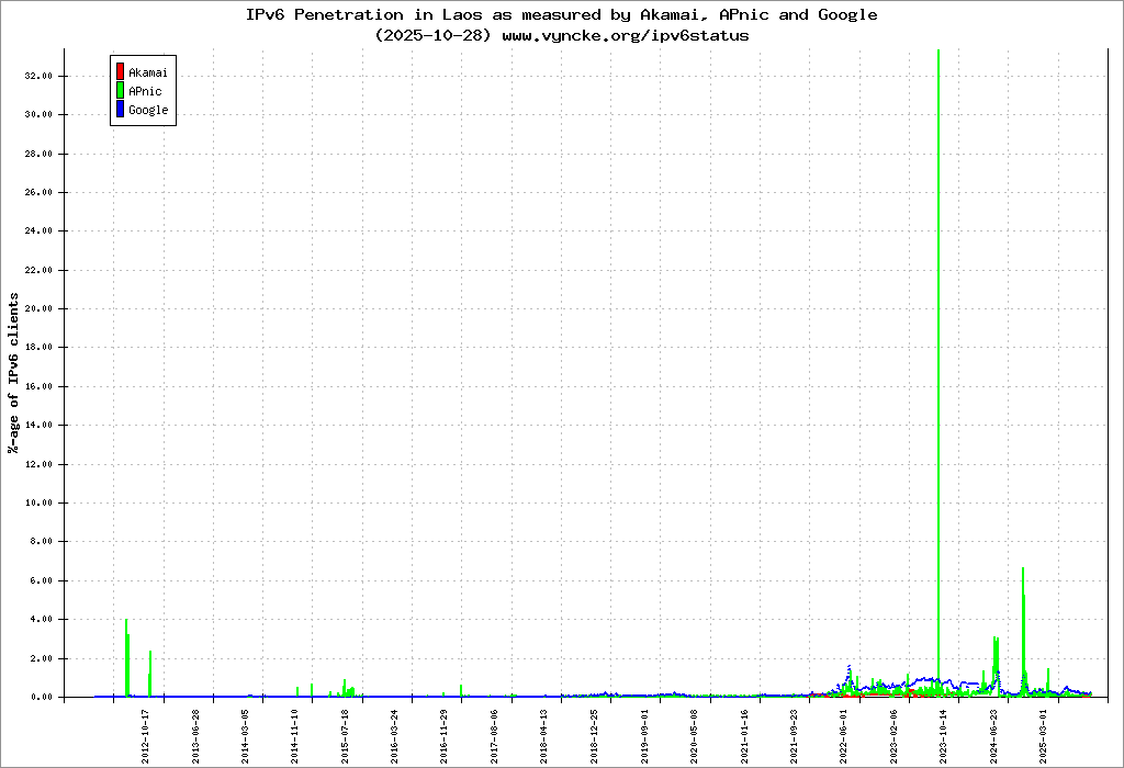 | 2404:2e00::/32 | Enterprise of Telecommunications Lao Saylom Rd 0100, P.O.Box 7953, Vientiane LAO PDR. | 2016-08-11 |