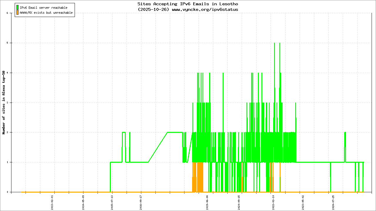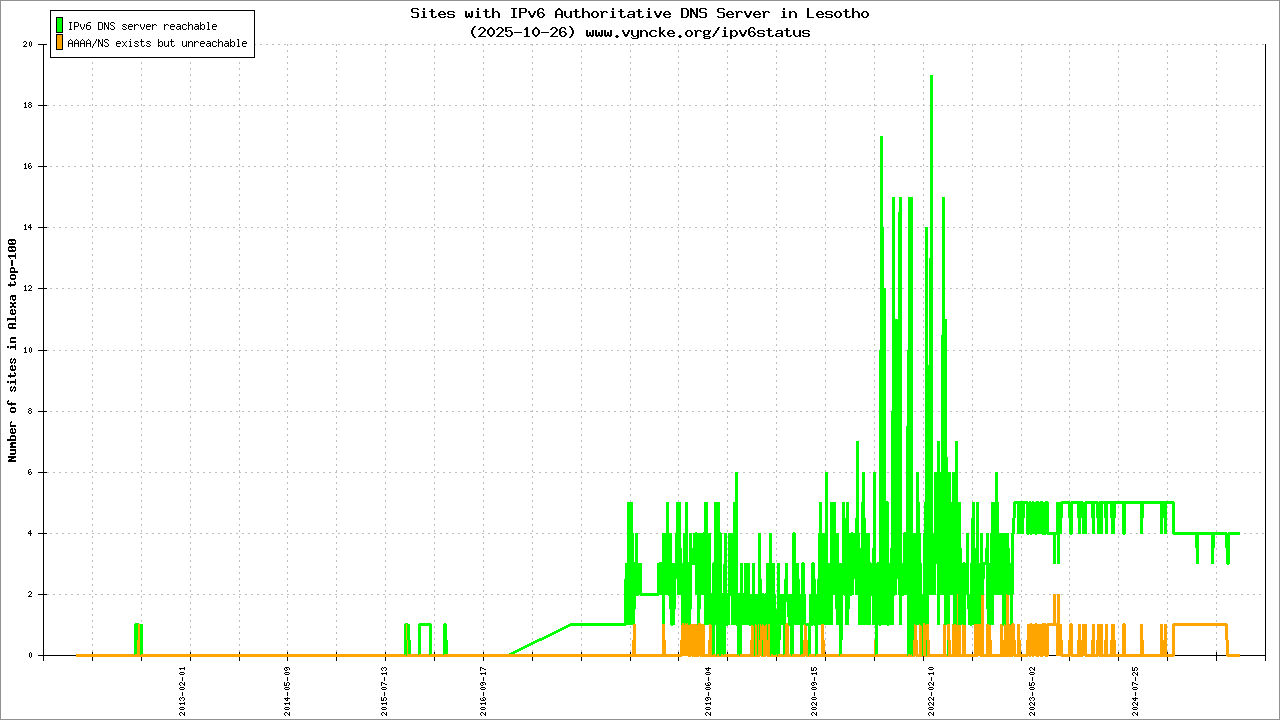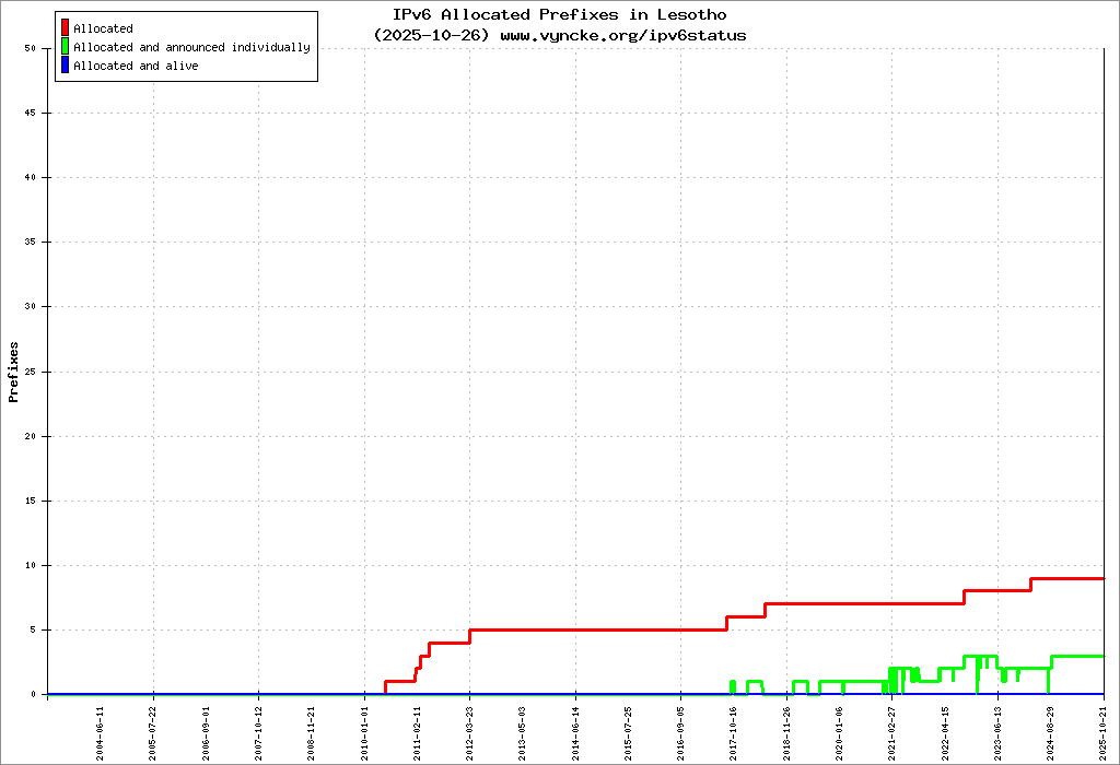 | 2001:43f8:1170::/48 | Lesotho Network Information Centre Proprietary Lesotho Network Information Centre Proprietary | 2022-03-23 |