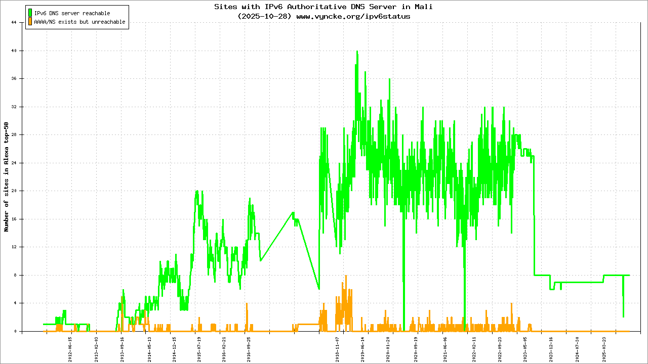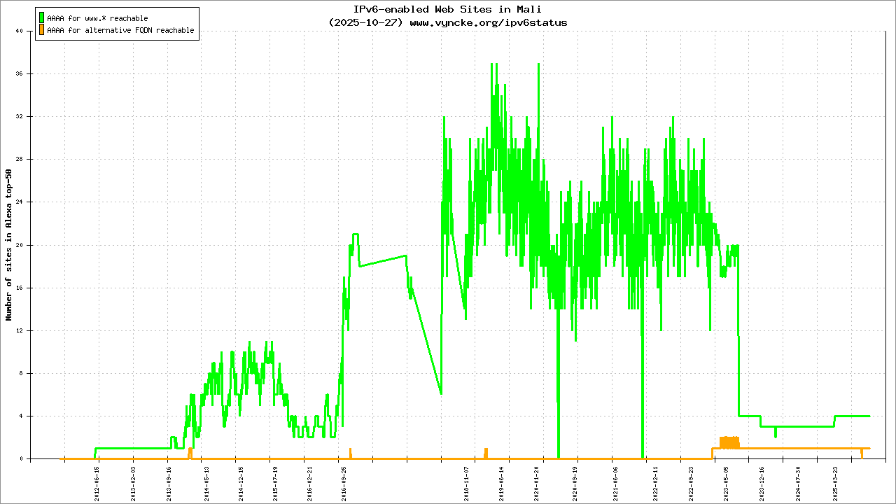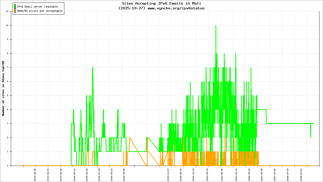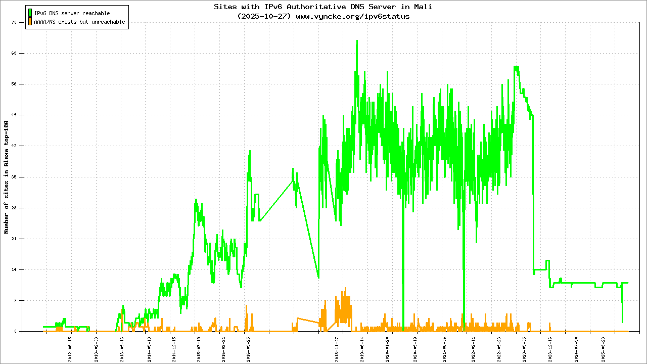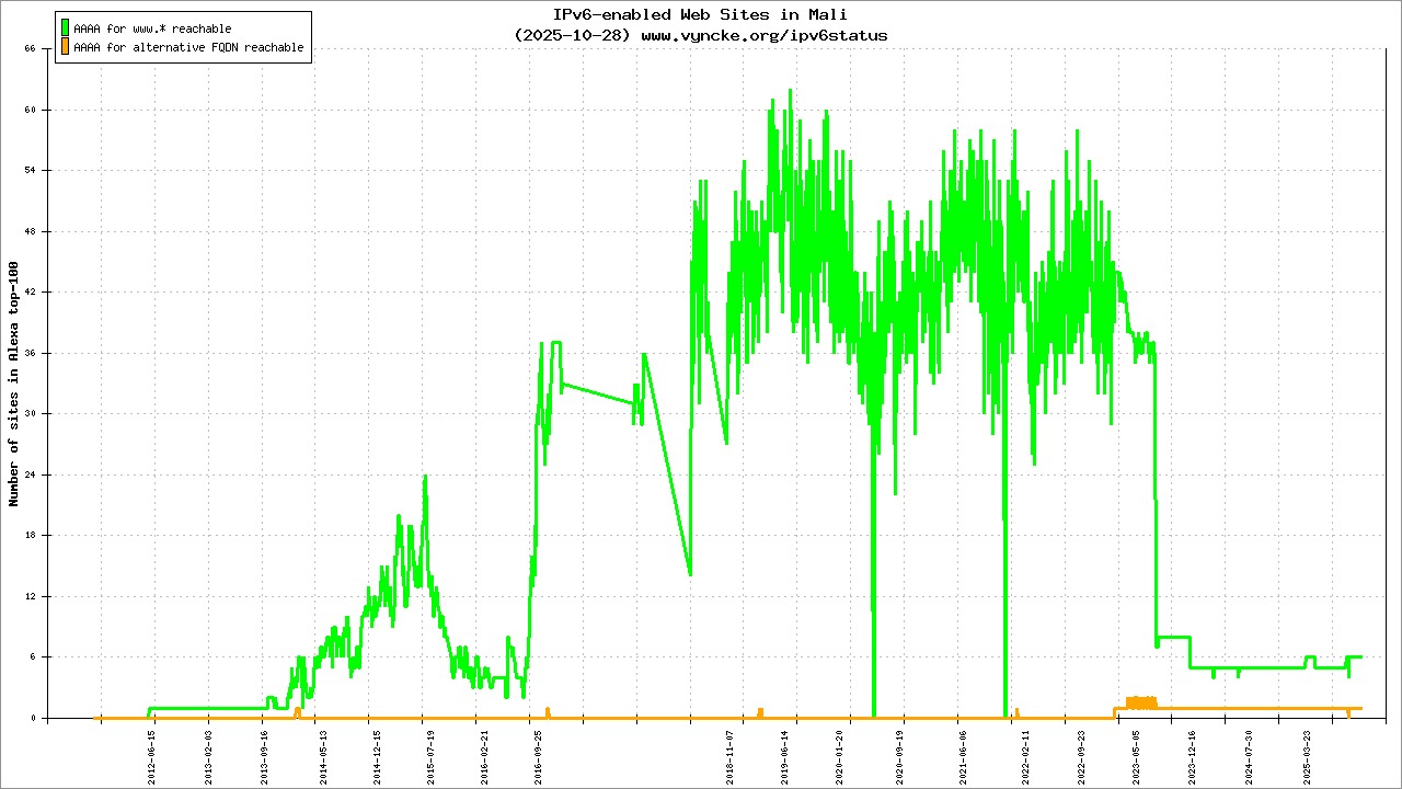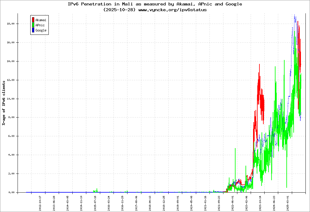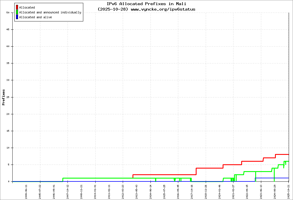 | 2001:43f8:10d0::/48 | Autorité Malienne de Regulation des Télécommincations/TIC et Postes (AMRTP) Autorité Malienne de Regulation des Tà| 2022-03-23 |