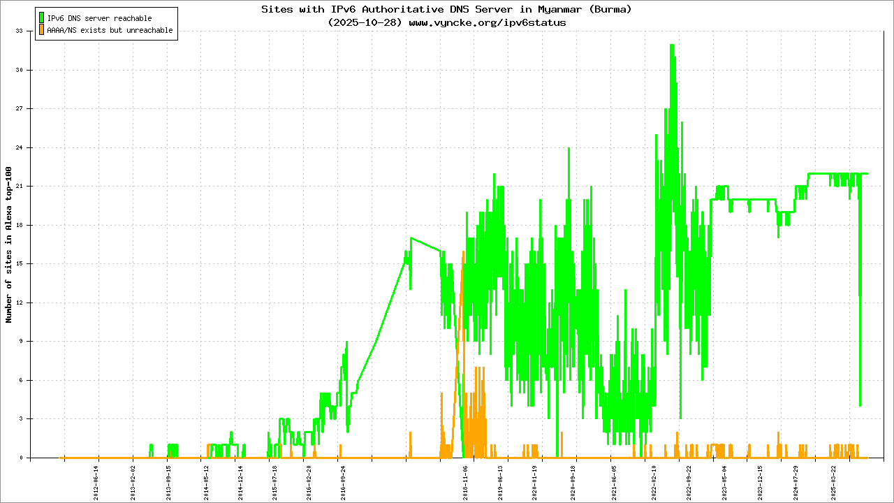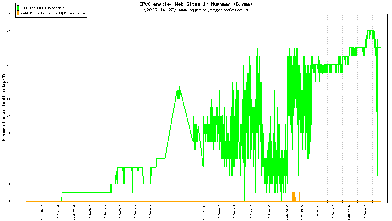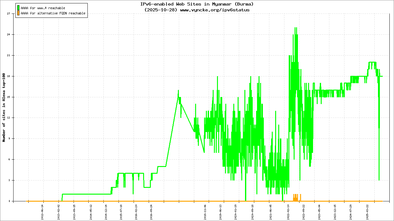 Myanmar (Burma) is scanned since 2011-10-25 and the last information is dated 2026-02-23.
