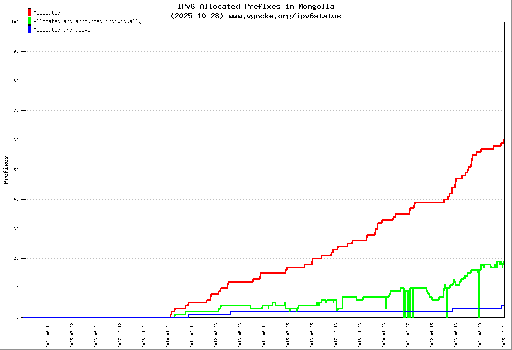 | 2407:6400::/32 | MobiCom Corporation Ulaanbaatar | 2014-11-04 |