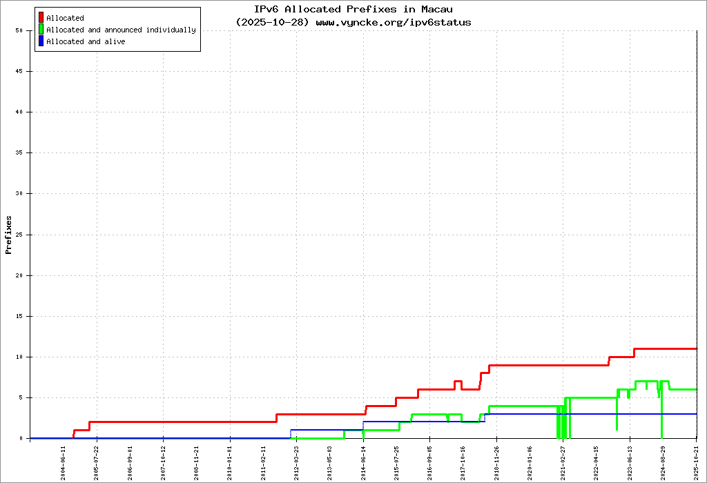 | 2001:f90::/32 | CTM Internet Services Companhia de Telecomunicacoes de Macau S.A.R.L. | 2010-01-19 |