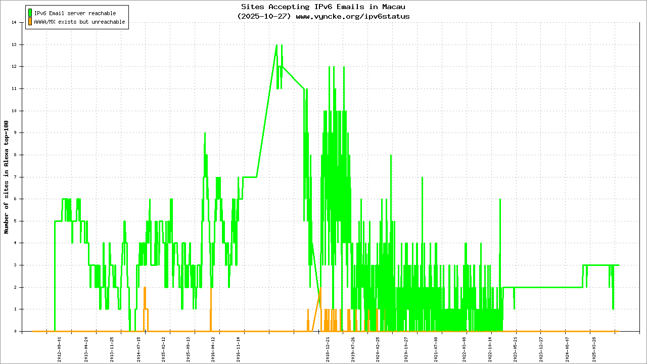 | / | FAILED | FAILED | ns3.macau.ctm.net vassun2.macau.ctm.net vassun1.macau.ctm.net 2001:f90:3::3 3/3 2018-06-12 |