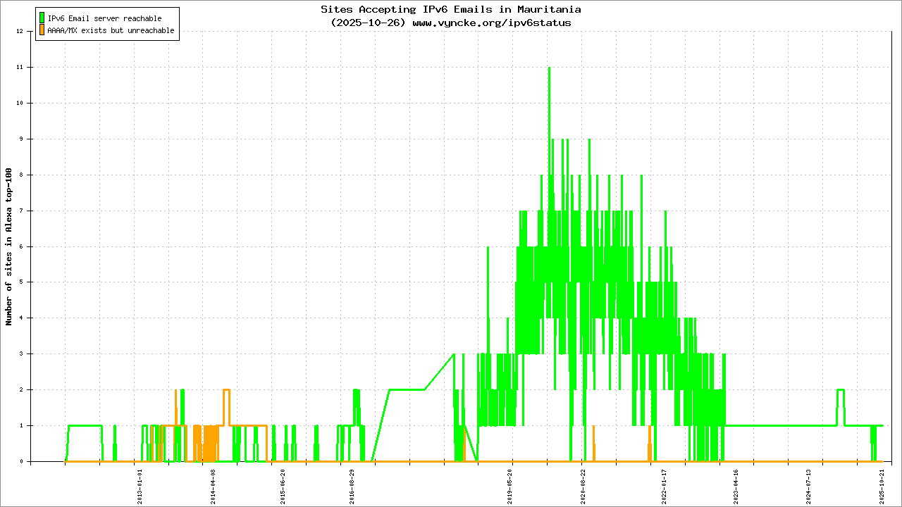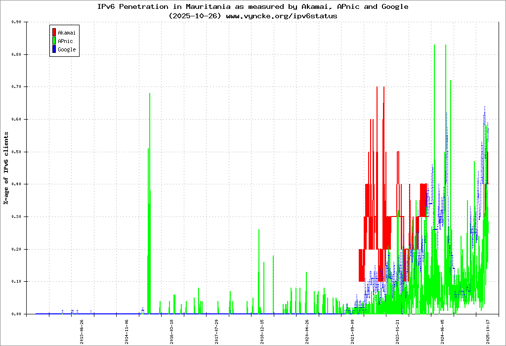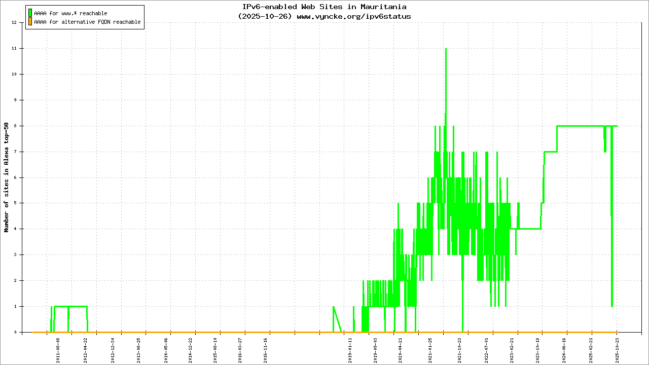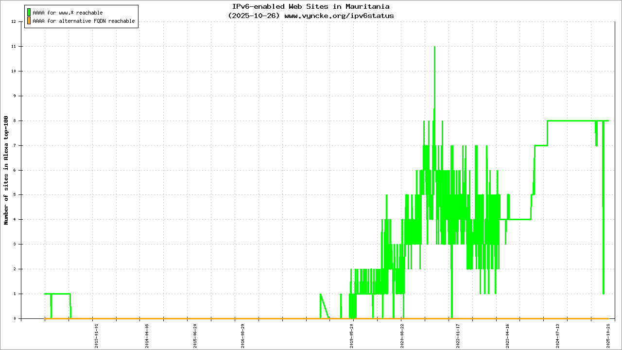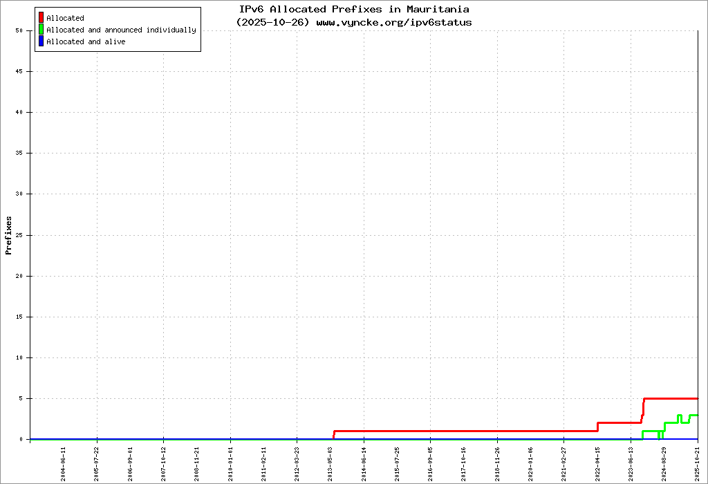 | 2c0f:f998::/32 | Mauritanian Telecommunication Company Mauritanian Telecommunication Company | 2025-07-12 |