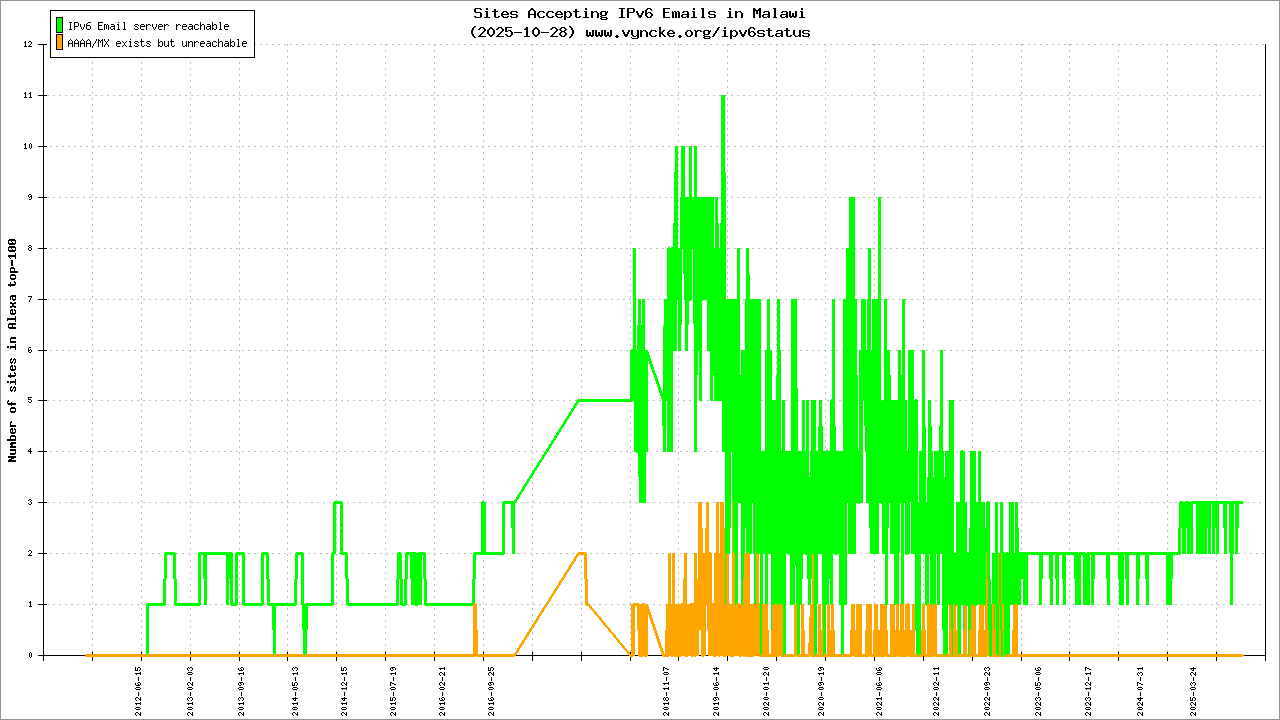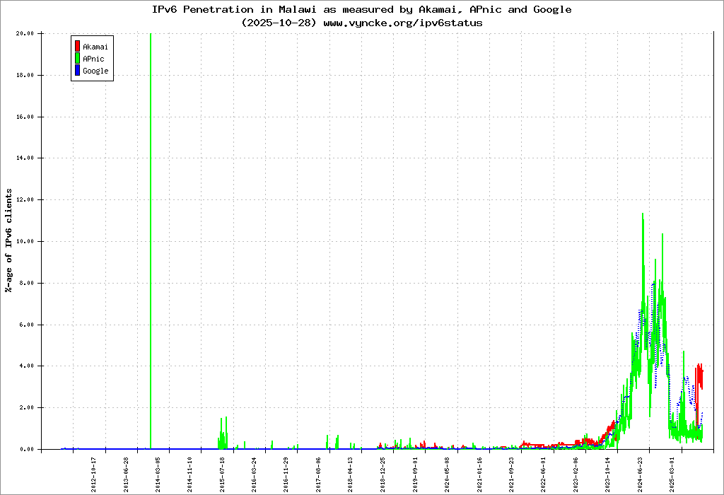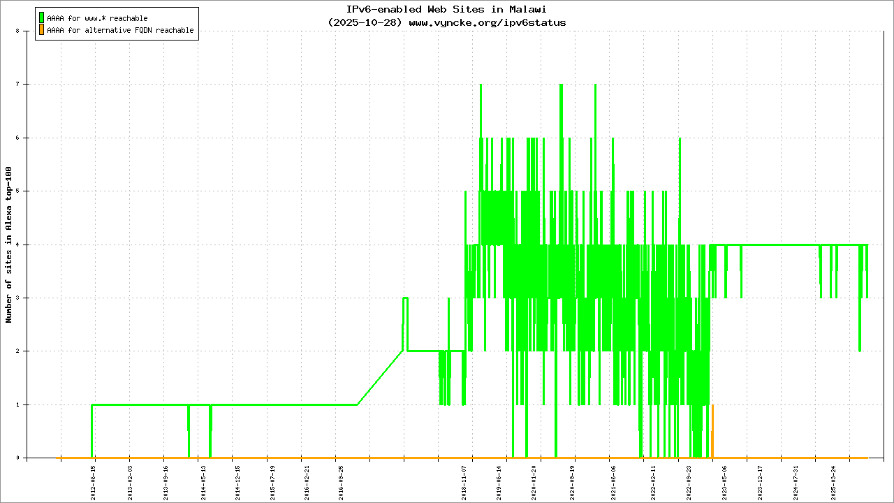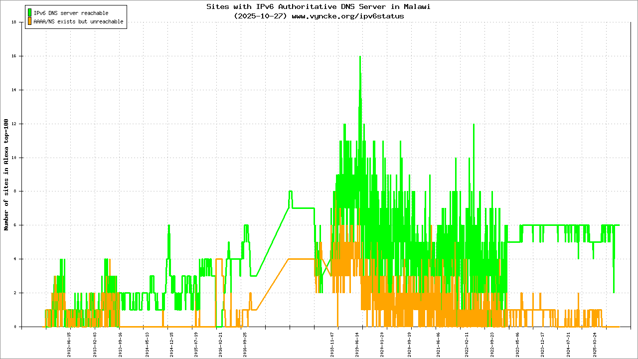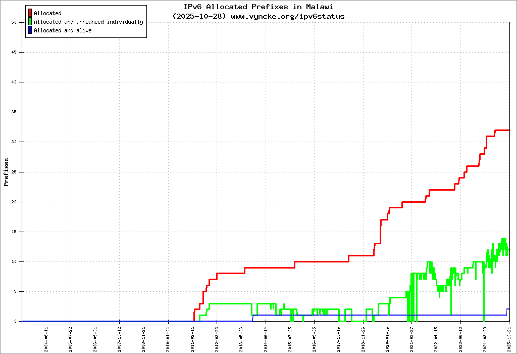 | 2c0e:7800::/24 | Malawi Telecommunications Limited Malawi Telecommunications Limited MTL-IPv6-NETWORK | 2025-10-29 |