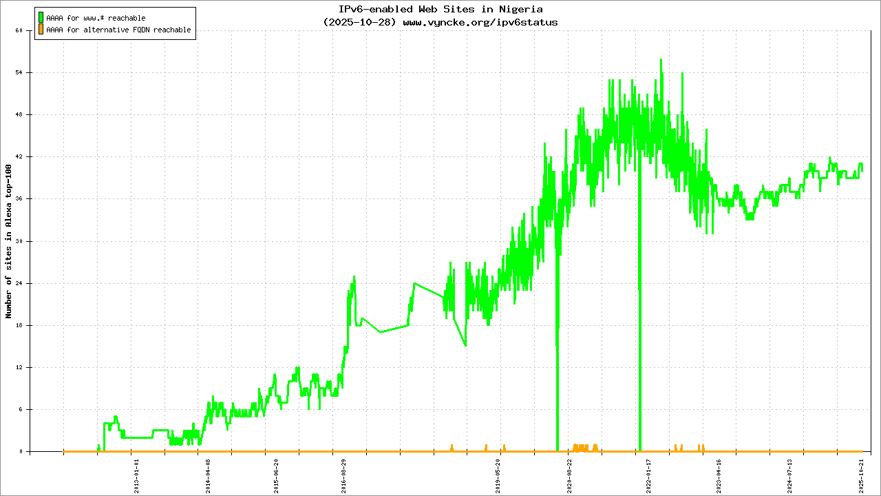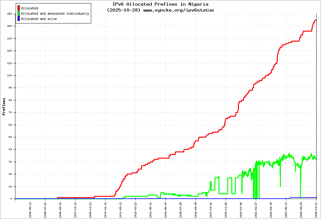 | 2c0f:ff20::/32 | Nigeria ICT Forum of Partnership Institutions Nigeria ICT Forum of Partnership Institutions | 2017-11-01 |