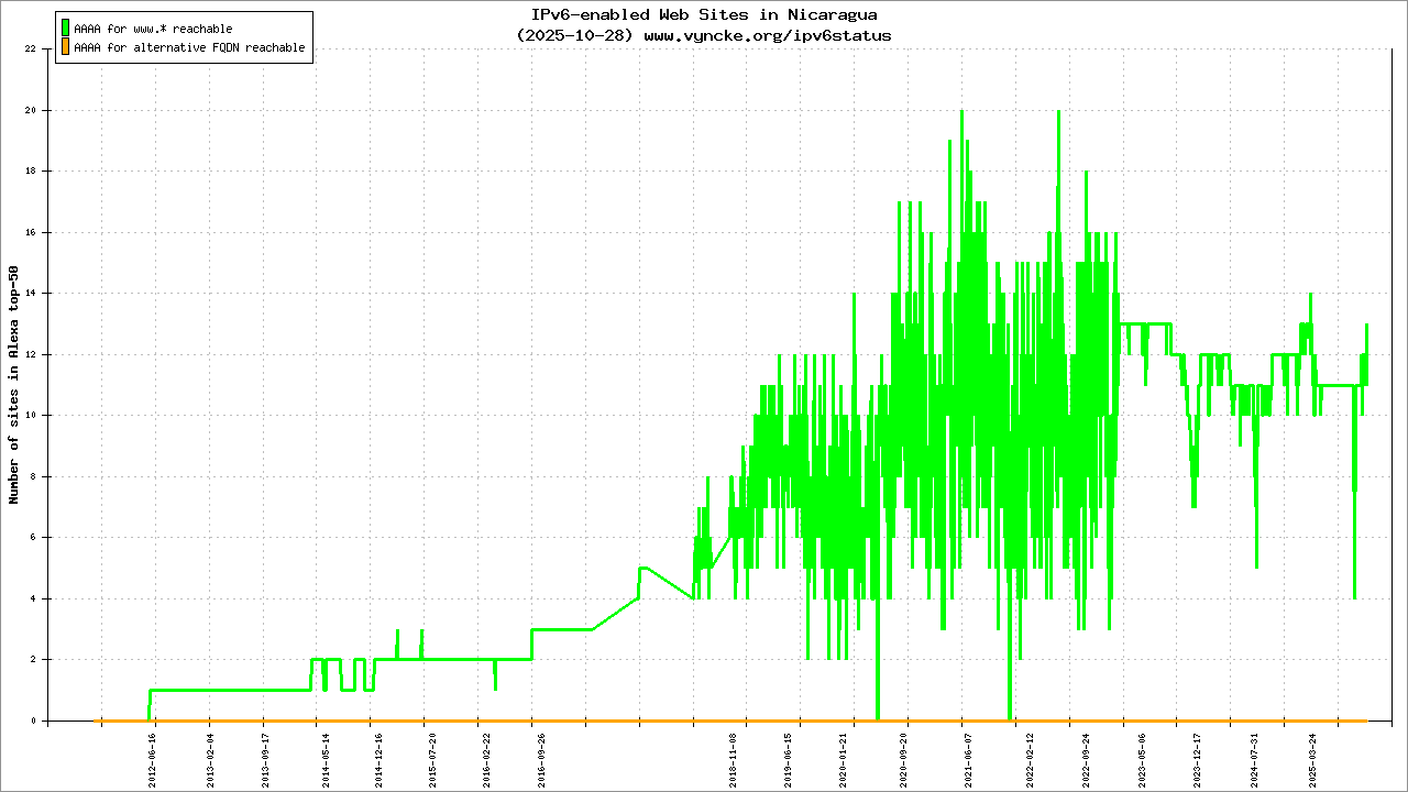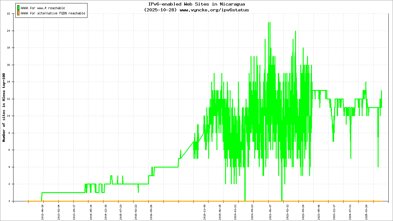 Nicaragua is scanned since 2011-10-27 and the last information is dated 2026-02-22.