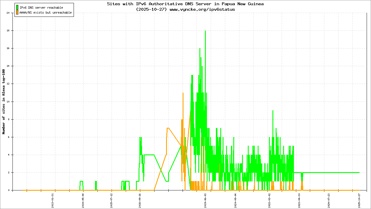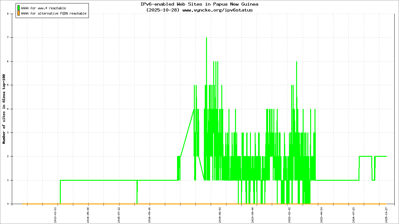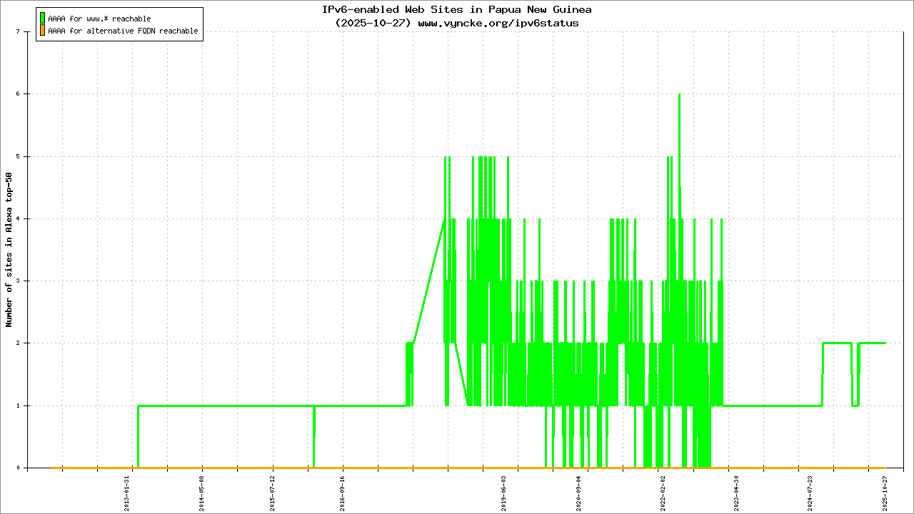 Papua New Guinea is scanned since 2011-10-25 and the last information is dated 2026-02-22.
