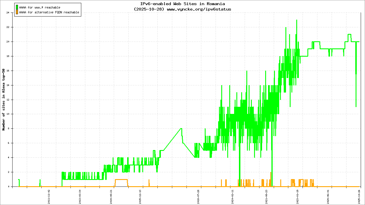 Romania is scanned since 2010-06-17 and the last information is dated 2026-02-22.