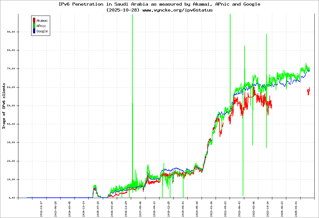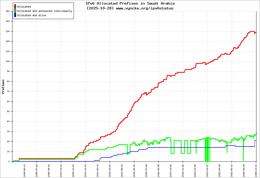 | 2001:16a2:34::/47 | Saudi Telecom Company JSC Saudinet, Saudi Telecom Company ISP Saudinet, Saudi Telecom Company ISP | 2017-06-01 |