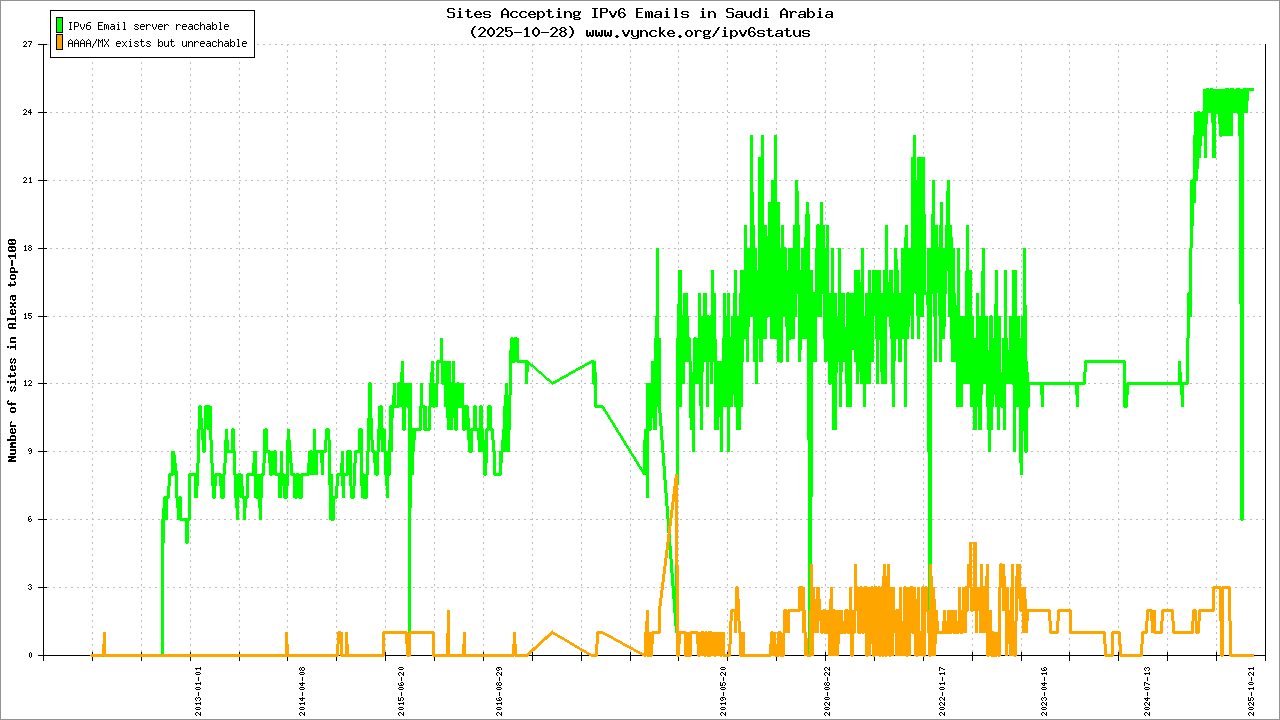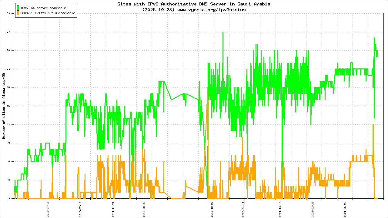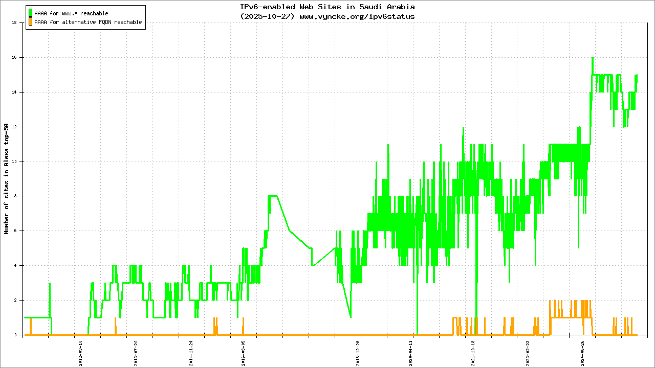 | 2001:16a2:26::/47 | Saudi Telecom Company JSC Saudi Telecom Company JSC STC ipv6 subnet | 2015-12-17 |