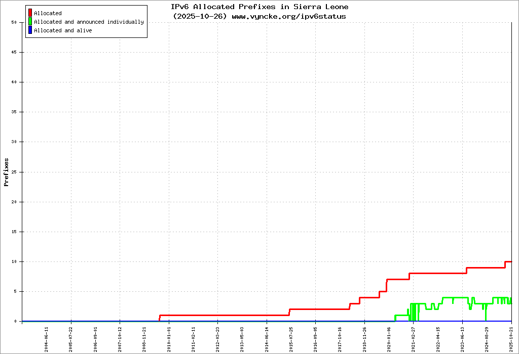 | 2001:43f8:a90::/48 | Ministry of Information and Communications, Government of Sierra Leone Ministry of Information and Communications, Government of | 2022-03-23 |