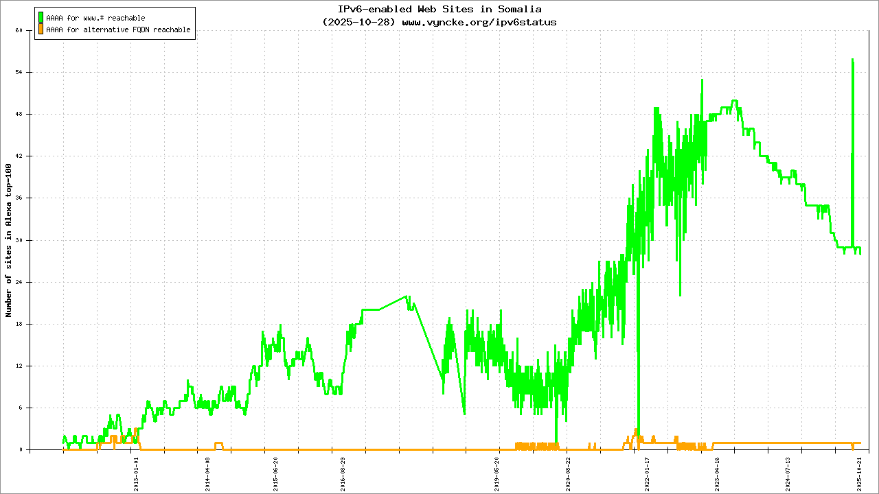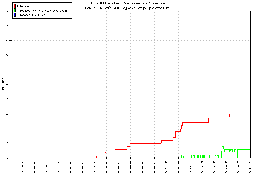 | 2001:43f8:11a1::/48 | Somali Internet Exchange Point Somali Research & Education Network(SomaliREN) | 2022-03-23 |