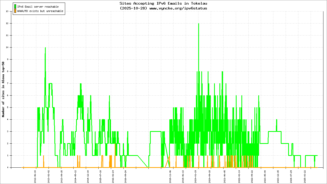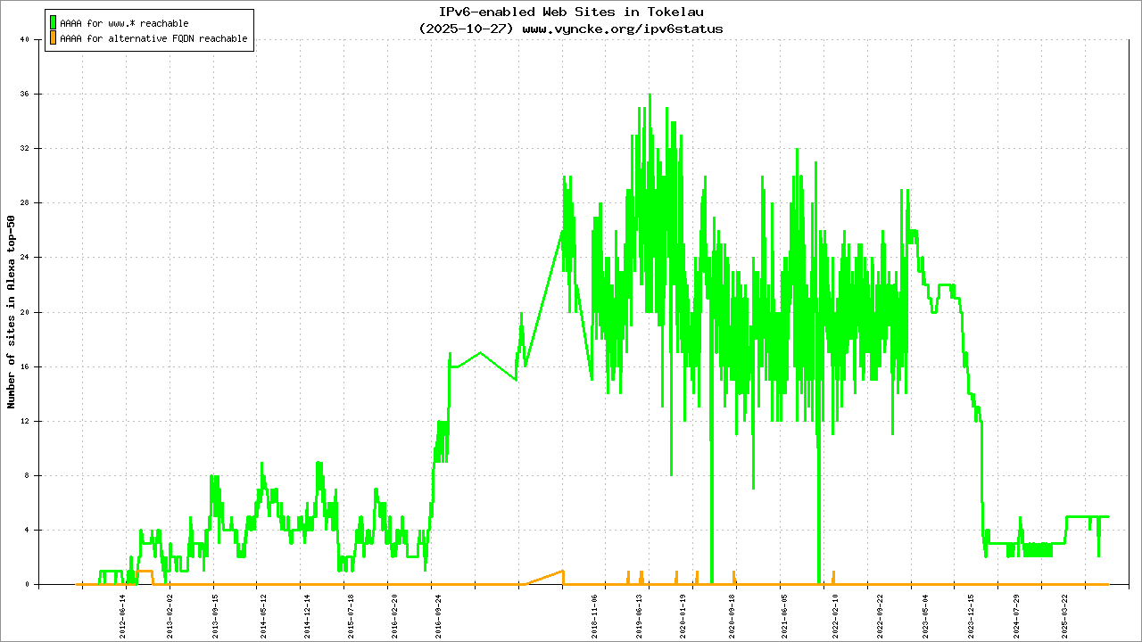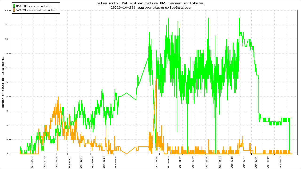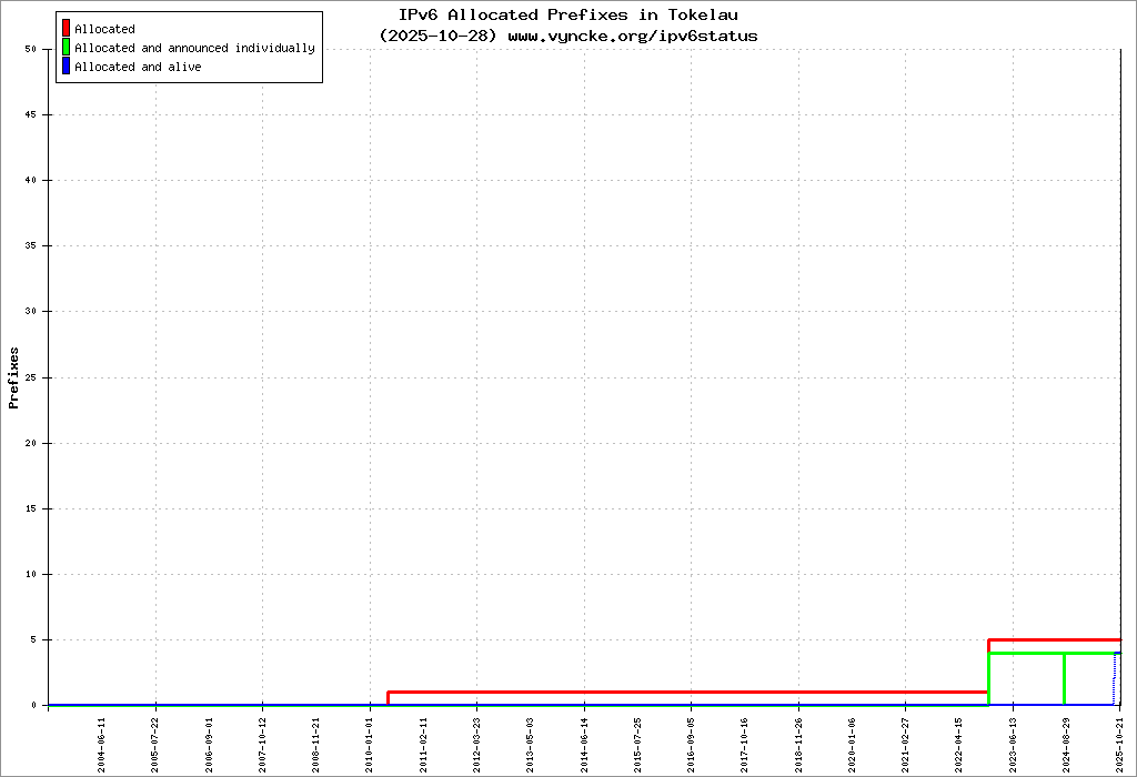 | 2001:678:50::/48 | Telecommunication Tokelau Corporation Teletok | 2011-11-15 |