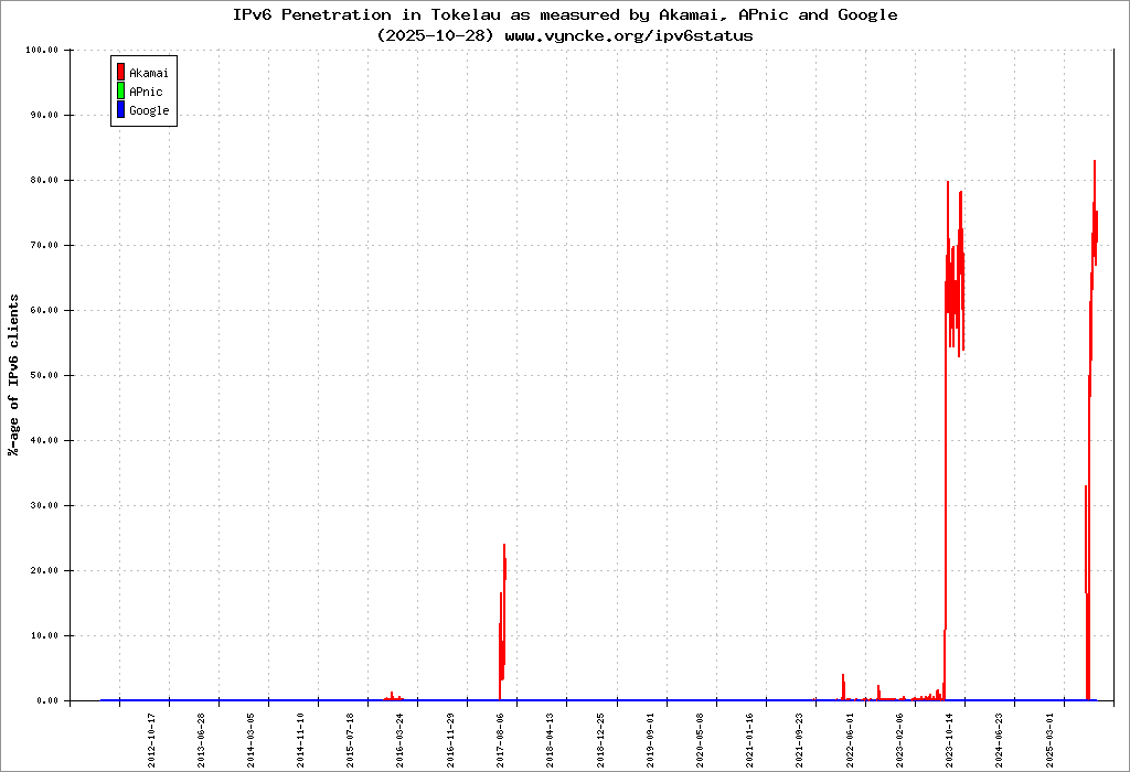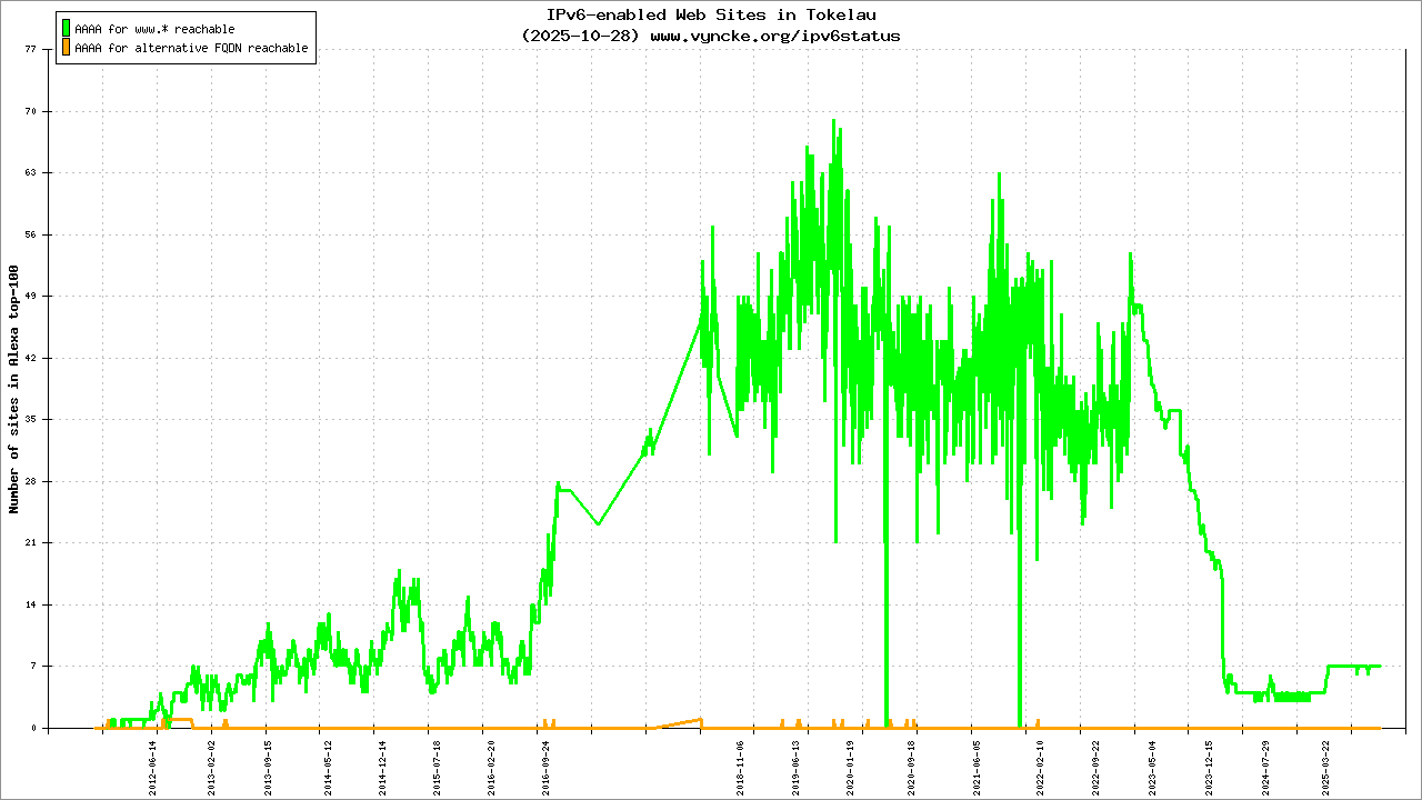 | 2402:7200::/32 | Telecommunications Tokelau Corporation - Teletok Fenuafala, Fakaofo, TOKELAU | |