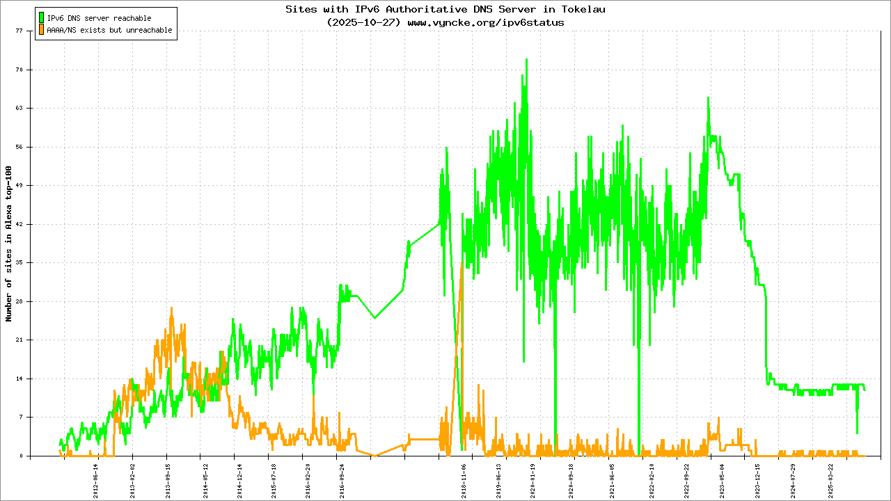 | 2001:678:54::/48 | Telecommunication Tokelau Corporation Teletok | 2011-11-16 |