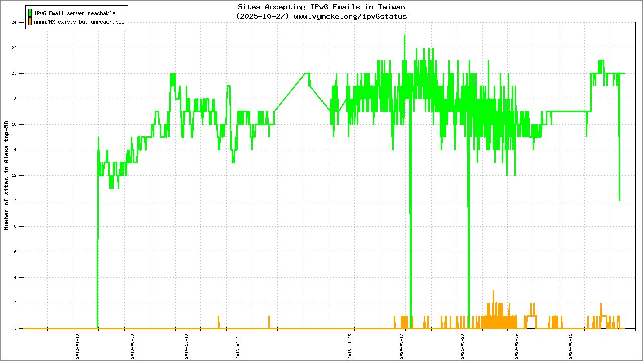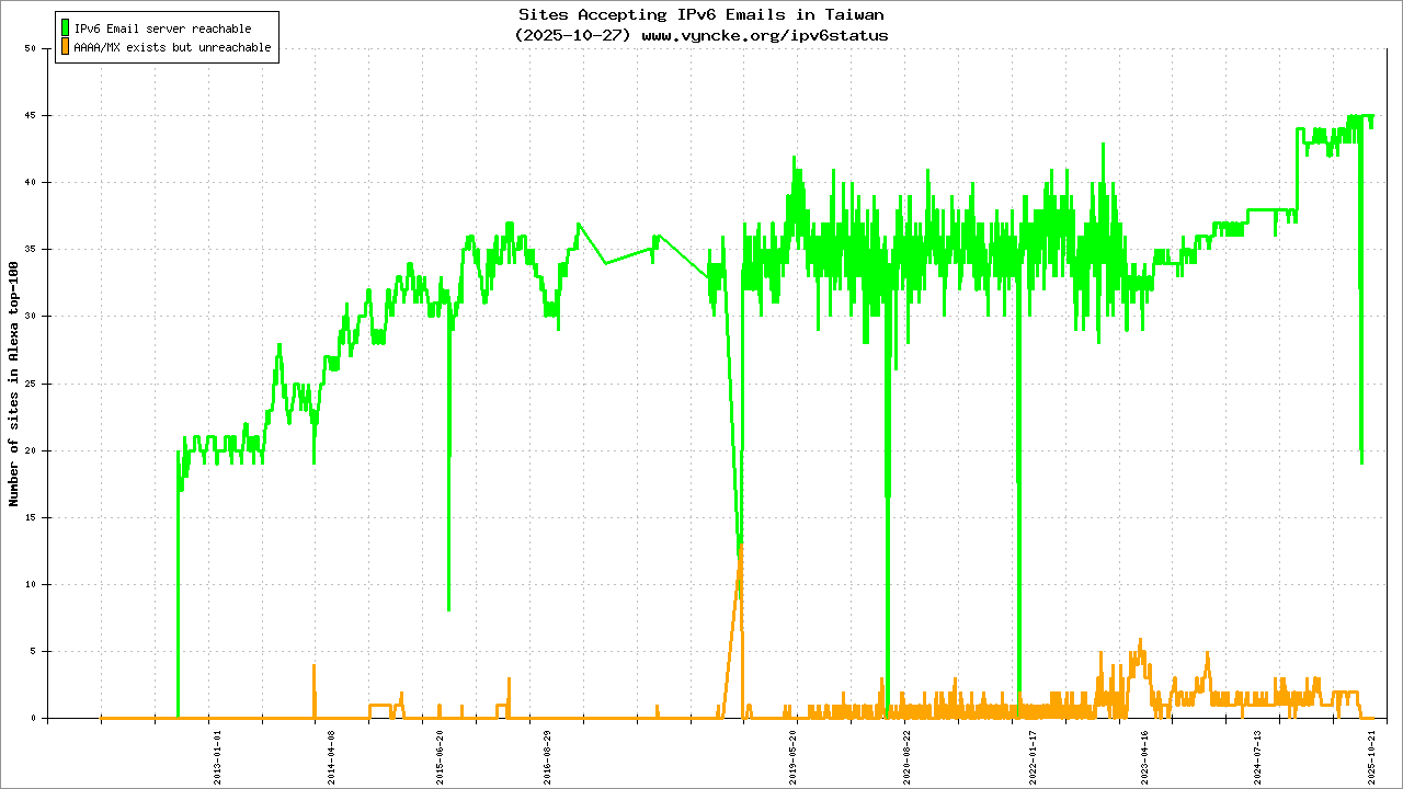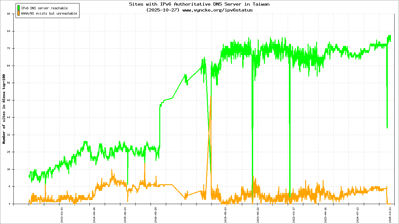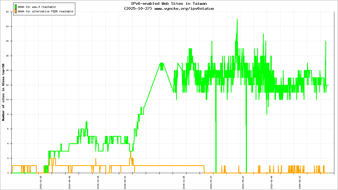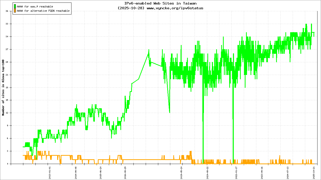 | 2001:c58:a000::/35 | IPv6 Research and Education Network in Taiwan A national project supported by NICI | 2022-03-23 |