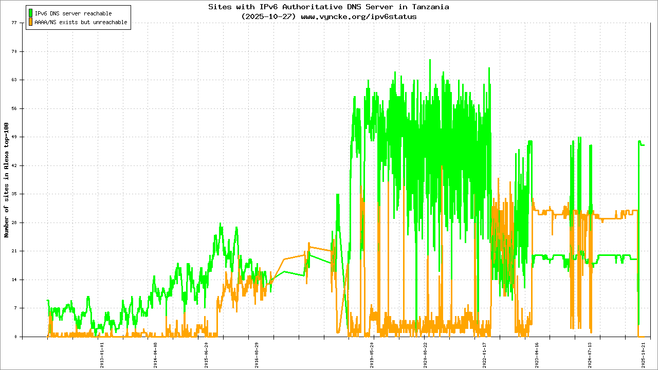 | 32 | / | FAILED | FAILED | b.ns.tznic.or.tz 2001:43f8:e0:1::70 1/2 2014-10-01 |