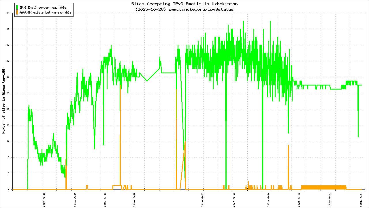| 2a05:45c0::/32 | Uzbektelecom JSC "Uzbektelekom" Joint Stock Company | 2020-01-25 |