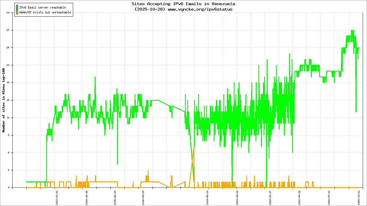 Venezuela is scanned since 2010-12-16 and the last information is dated 2026-02-23.