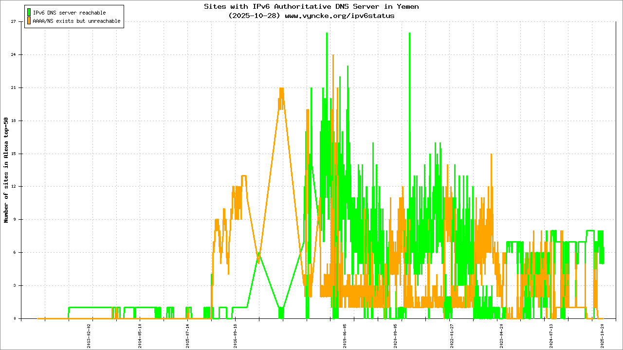| / | FAILED | FAILED | ns2.yemen.net.ye sah2.ye ns1.yemen.net.ye sah1.ye 2a02:e280:8:d000::34 4/6 2018-08-12 |